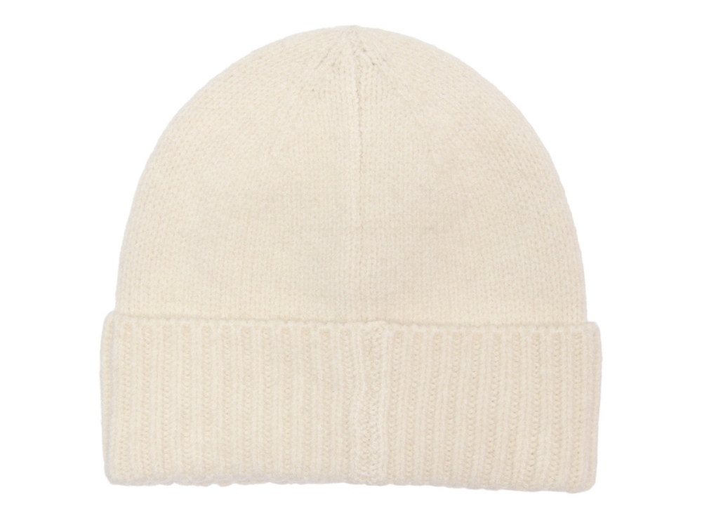 Blød beanie i råhvid nuance fra KIDS ONLY med små påsyede perler foran, der giver et fint og feminint udtryk. Huen har opsmøg og er lavet i en behagelig, elastisk kvalitet.