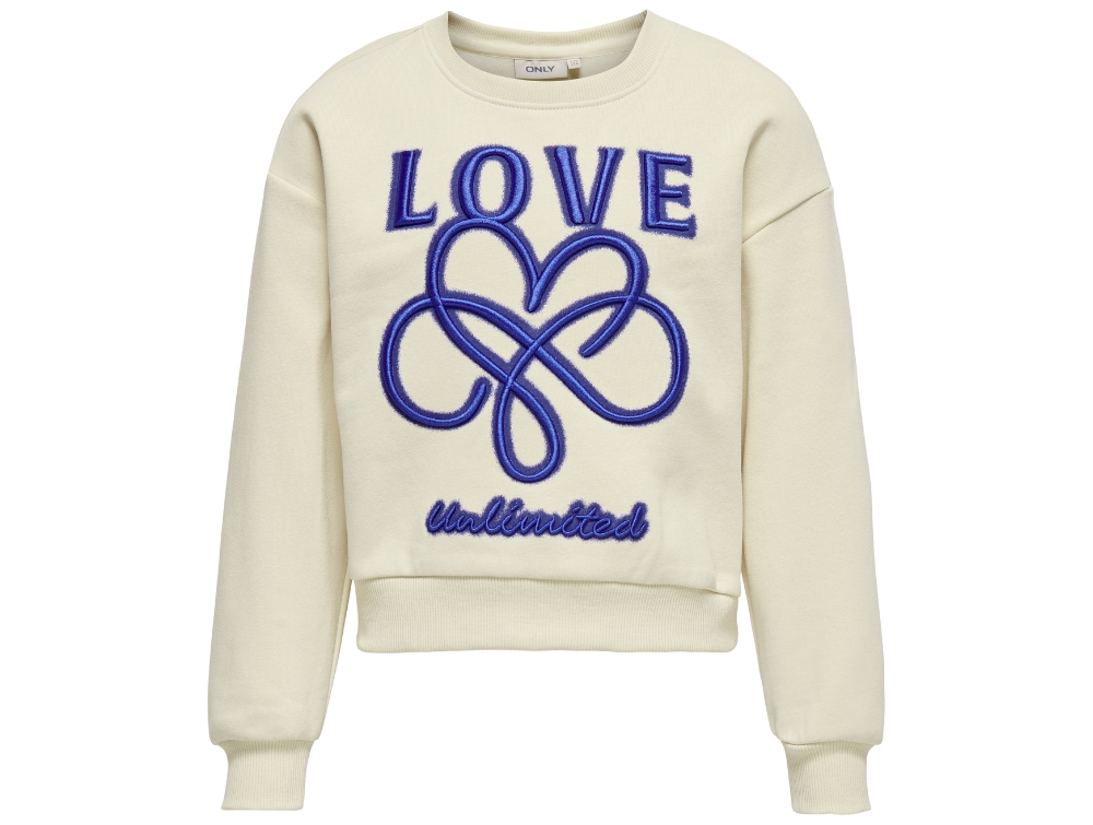 Sweatshirt i farven birch med smuk blå Love-applikation fra Kids ONLY.