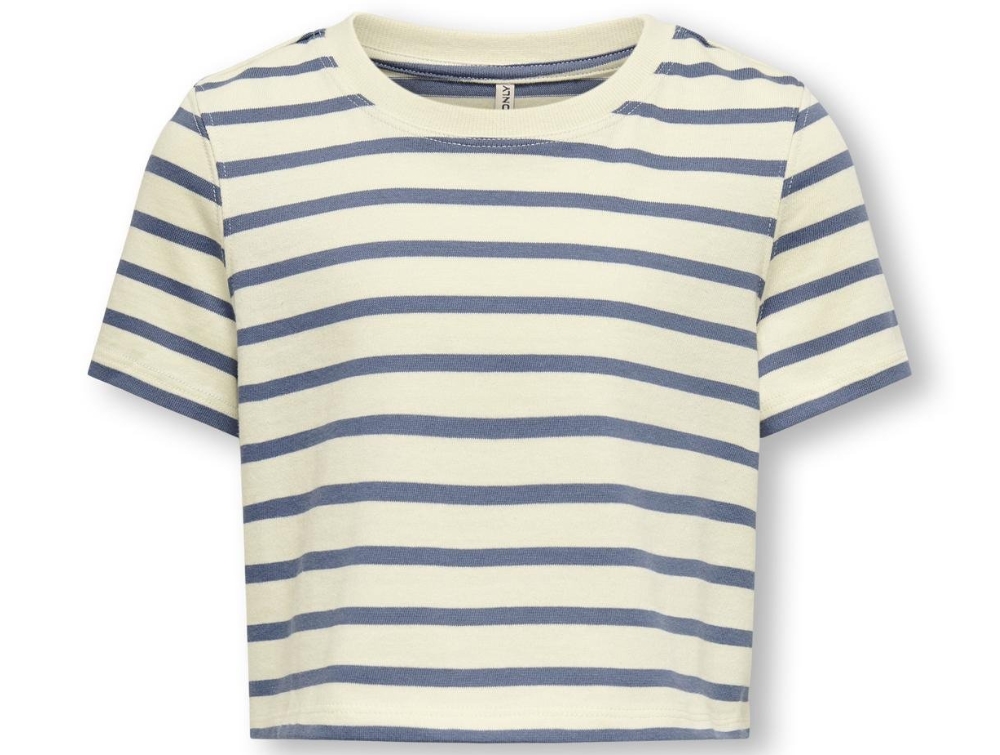 Cool stribet t-shirt fra Kids ONLY i farverne birch og vintage indigo.