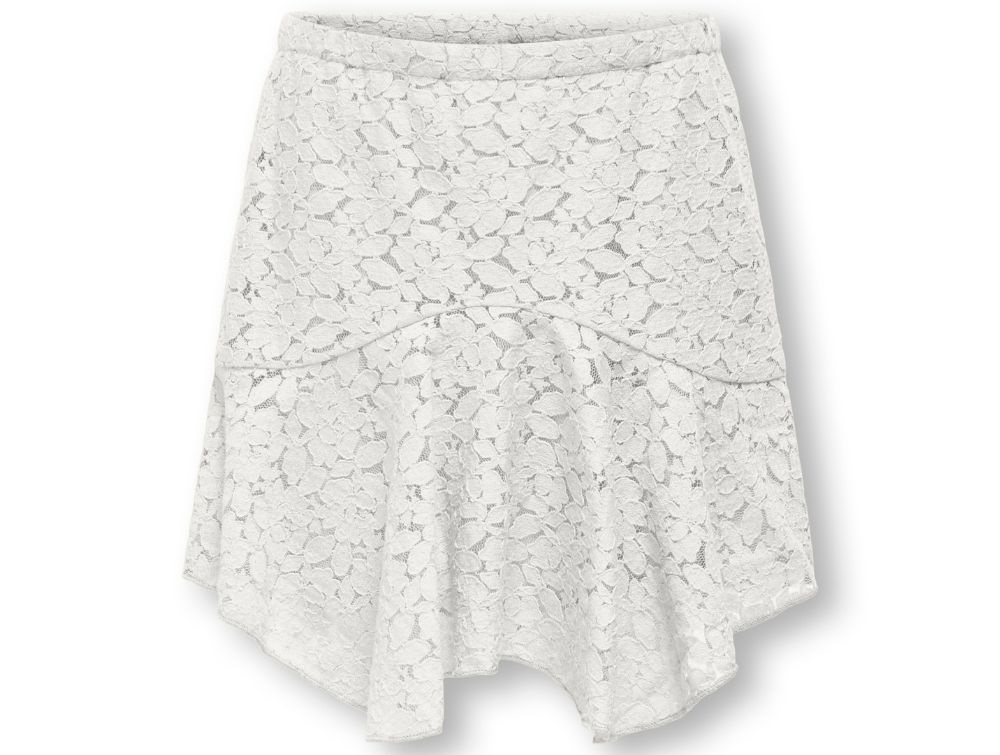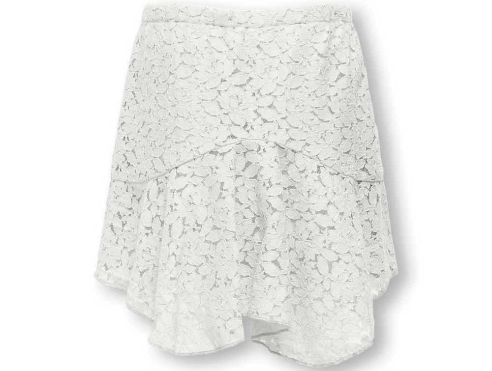 Hvid blondenederdel fra Kids ONLY i let bomuldsblanding med blonder og elastik i taljen.
