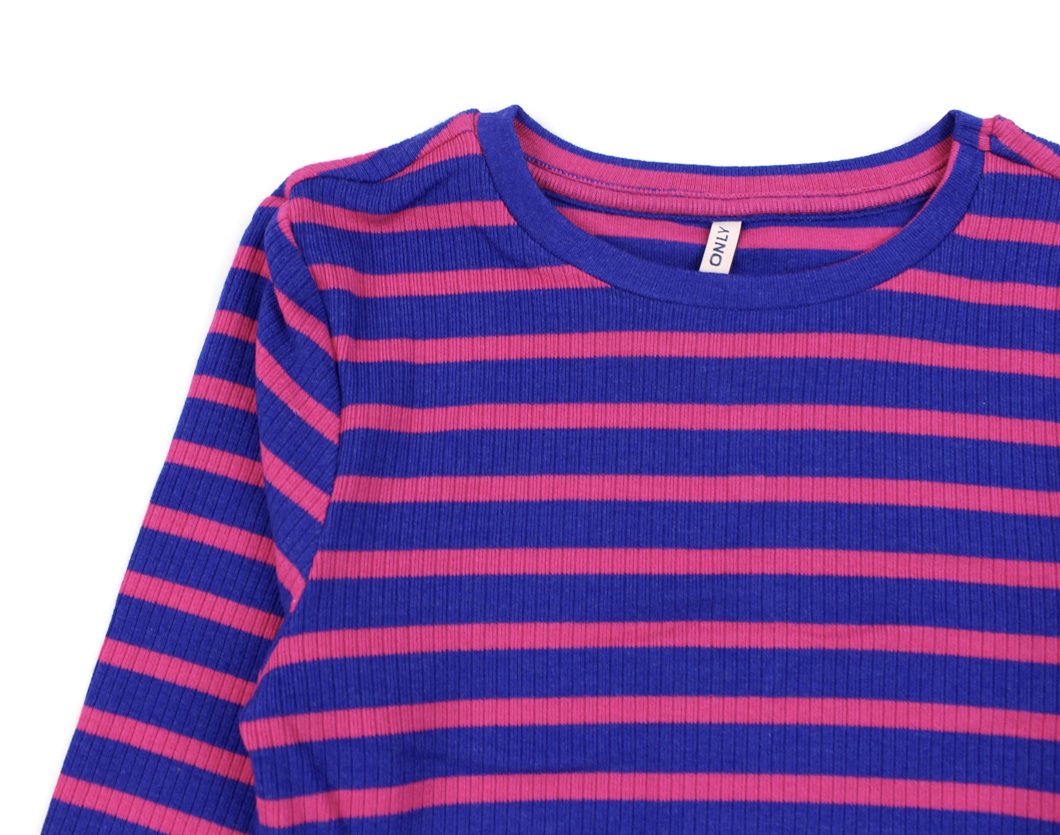 Stribet top i rib-kvalitet i farverne bluing og fuchsia purple fra Kids ONLY.