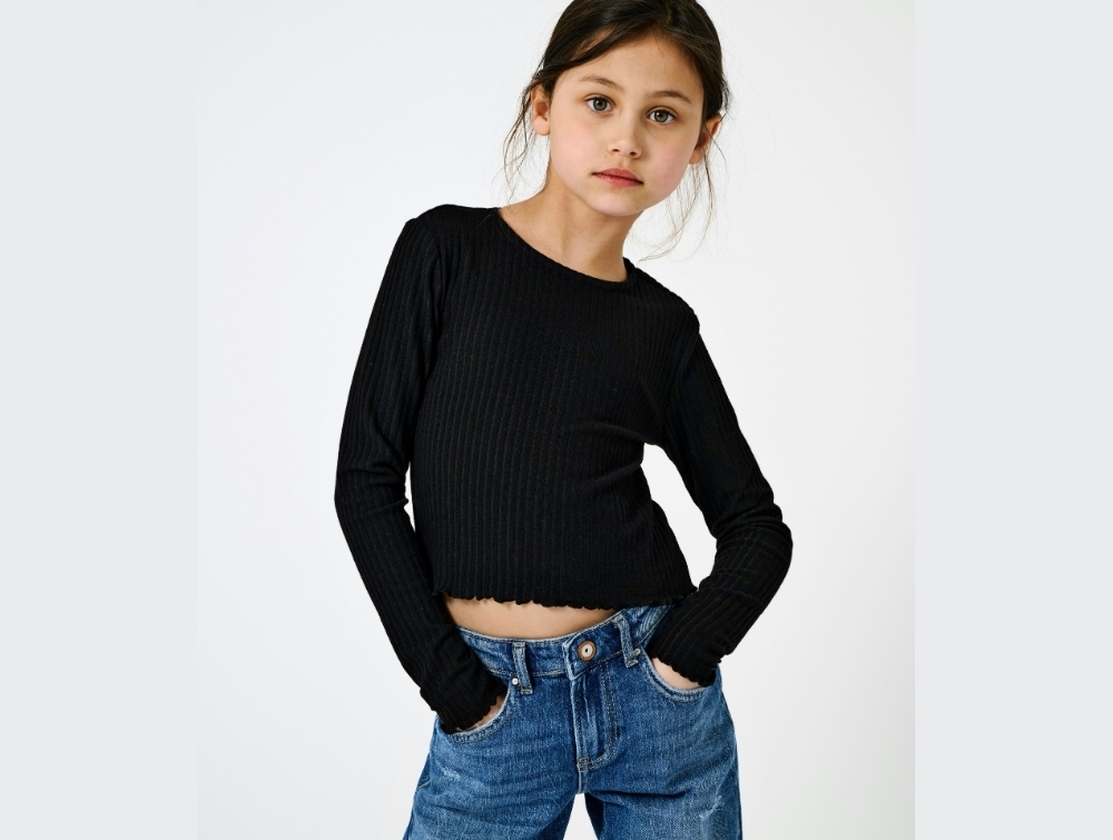 Kids ONLY sort bluse med lange ærmer og cropped længde