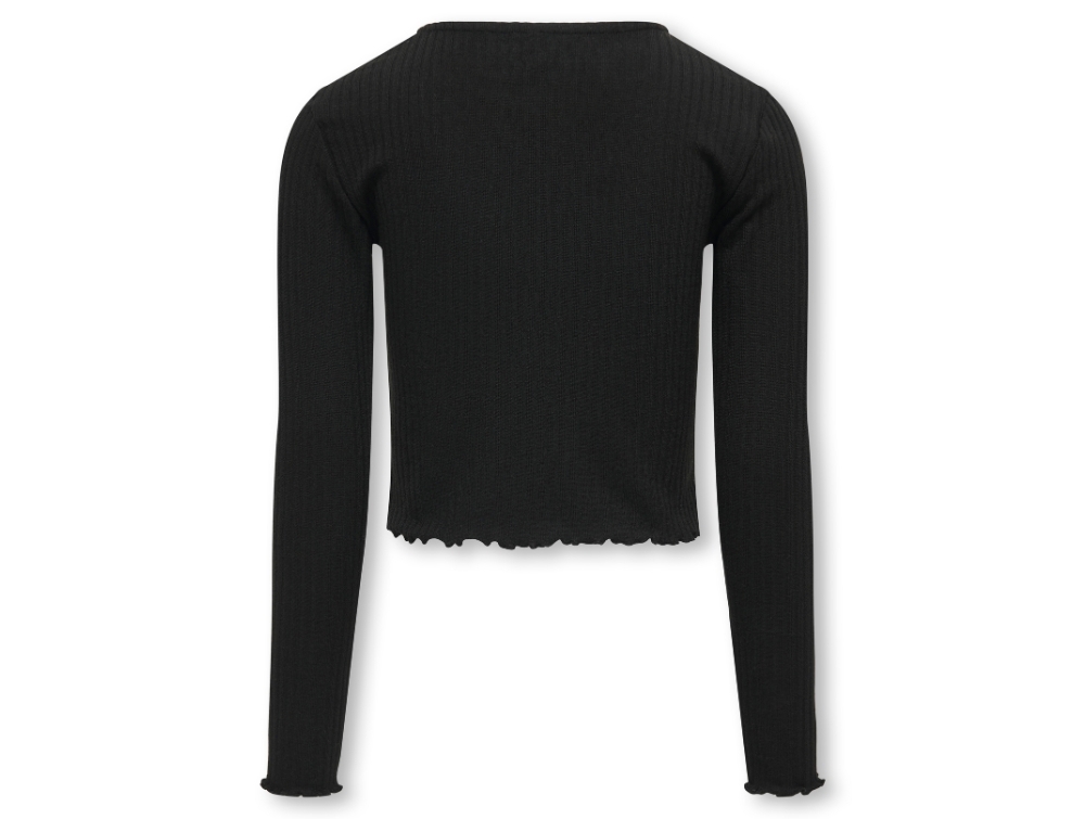 Kids ONLY sort top med lange ærmer og flæsedetaljer på modelKids ONLY sort top med lange ærmer og flæsedetaljer forfraKids ONLY sort top med lange ærmer og flæsedetaljer detaljeKids ONLY sort top med lange ærmer og flæsedetaljer bagfra