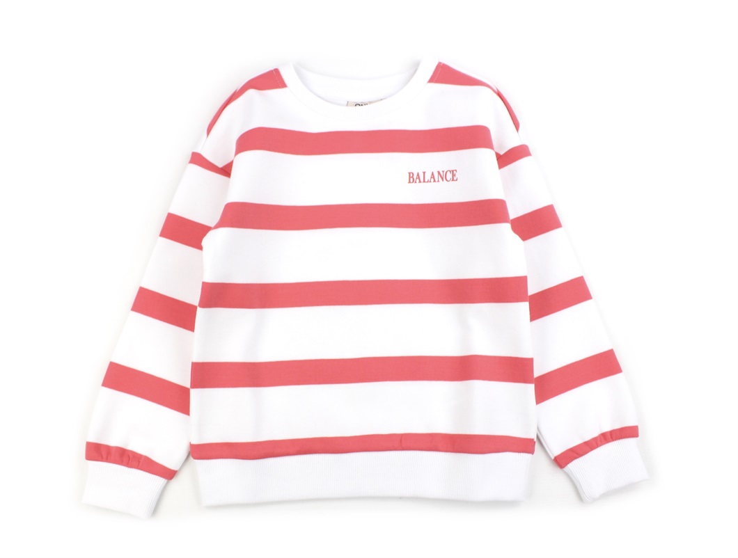 Bredstribet sweatshirt i farverne bright white og coral paradise med lille tekstprint fra Kids ONLY.