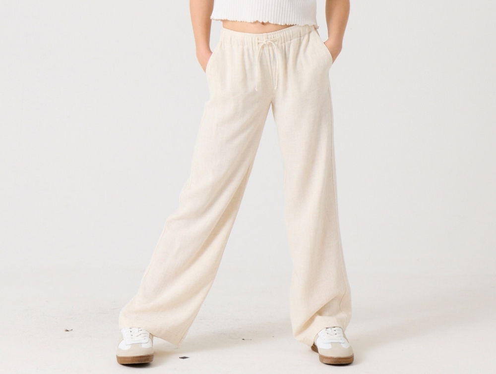 Materialet i viskose og hør giver en let og luftig kvalitet, der føles behagelig mod huden. Stoffet har en naturlig struktur, som gør bukserne velegnede til varmere dage.