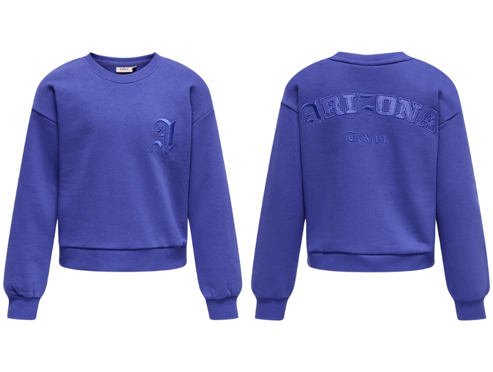 Cool sweatshirt i farven clematis blue med College Arizona-applikation på front og ryg fra Kids ONLY.