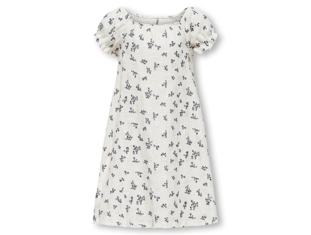 Skøn off shoulder kjole i farven cloud dancer med sort blomsterprint fra Kids ONLY.