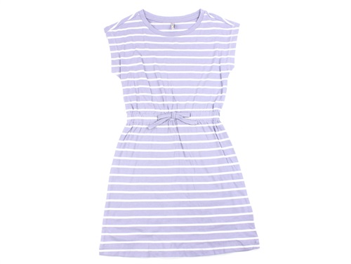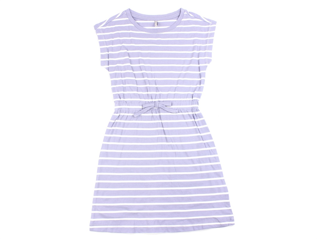 Stribet kjole med bindebånd i taljen i farverne cosmic sky og cloud dancer fra Kids ONLY.