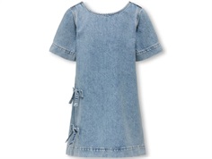 Denimkjole i lys blå fra Kids ONLY med korte ærmer og sløjfedetalje.