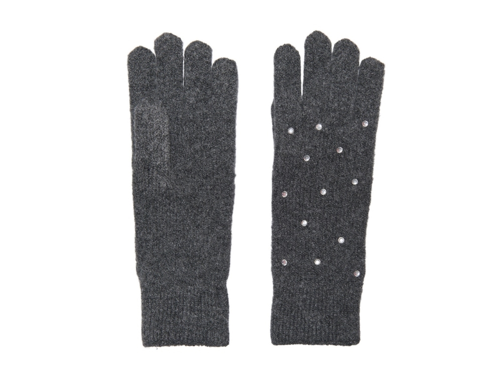 Mørkegrå melerede handsker fra KIDS ONLY med små similisten på håndryggen, der giver et fint glitrende udtryk. Handskerne har ribkant ved håndleddet for bedre pasform og er lavet i en blød, elastisk kvalitet.