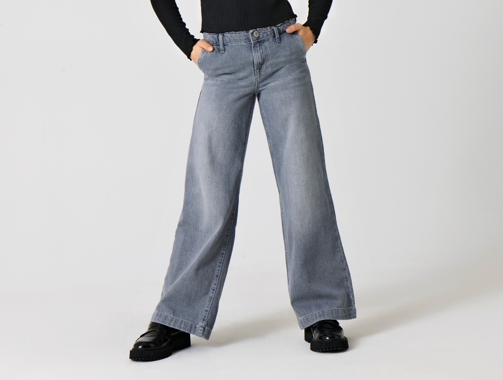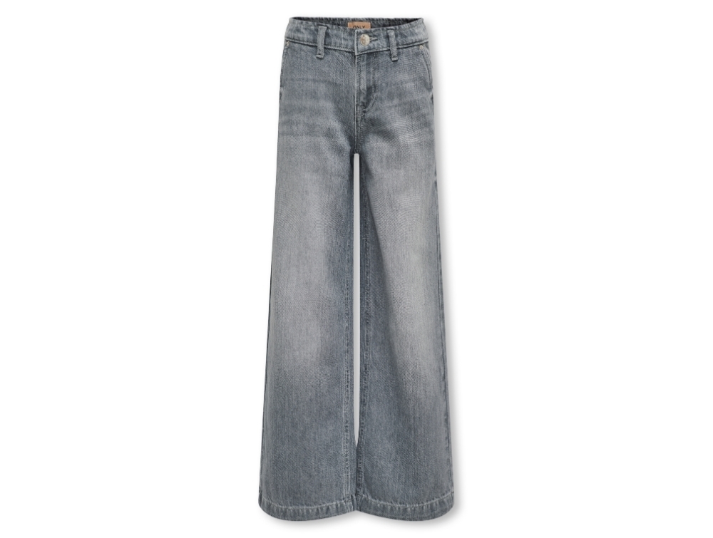 Kids ONLY wide leg jeans i medium grey denim forfraKids ONLY wide leg jeans i medium grey denim på modelKids ONLY wide leg jeans i medium grey denim bagfra