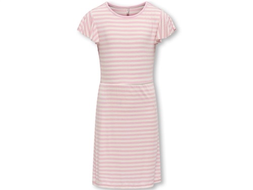 Stribet viskosekjole fra Kids ONLY i lyserød og råhvid med ærmeløst snit og V-hals.
