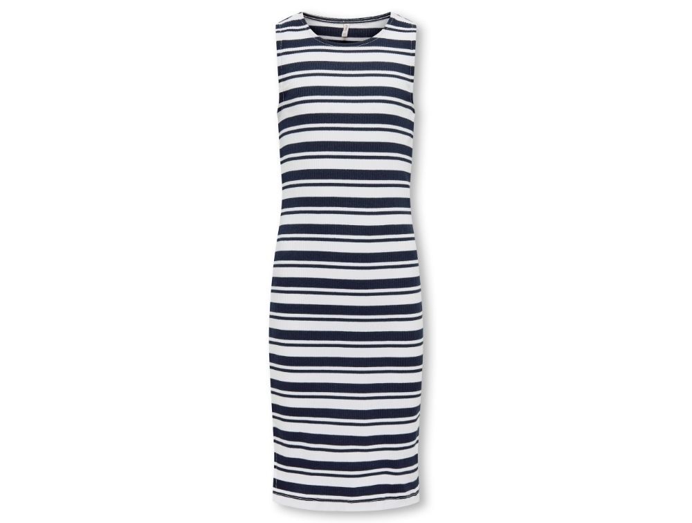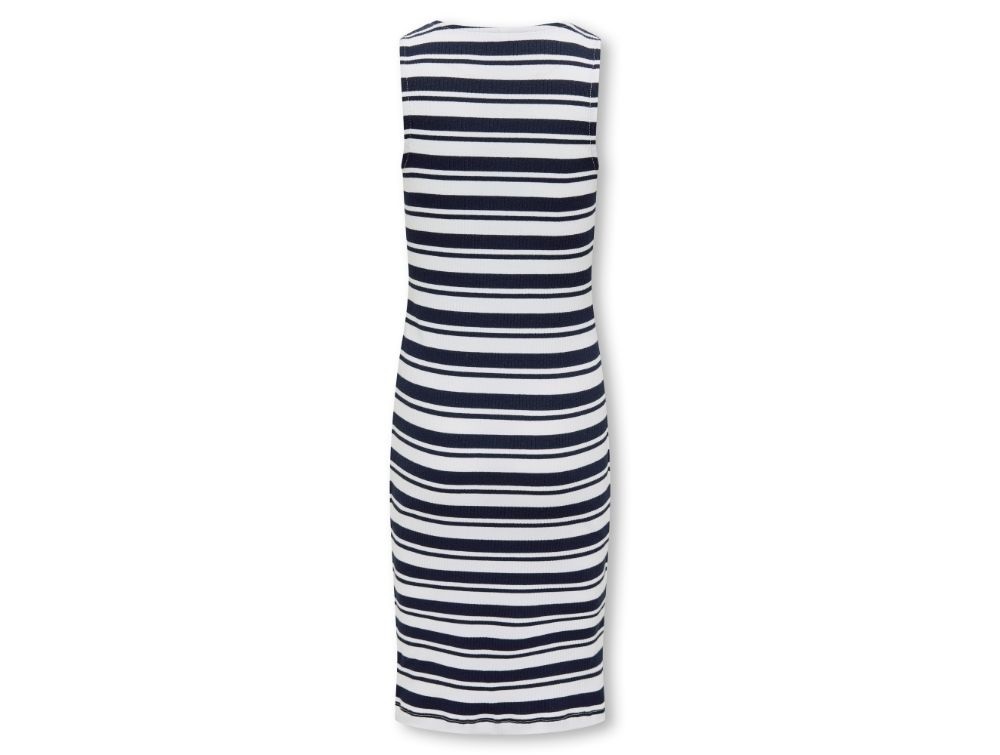 Lang kjole i mørkeblå (night sky) og hvid fra KIDS ONLY med klassiske striber og tætsiddende snit.