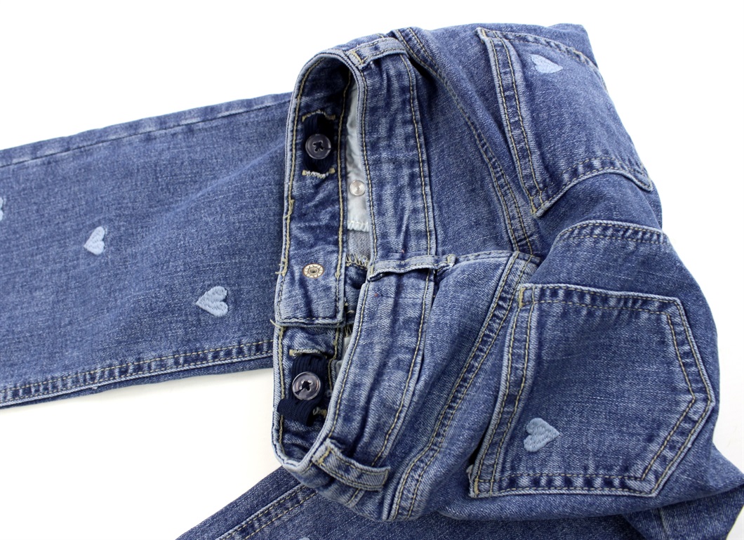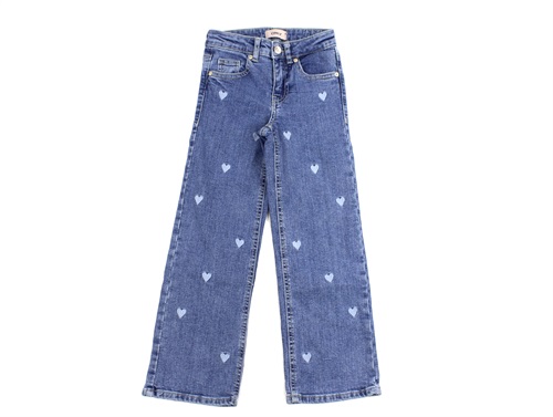Cool brede denimbukser i farven light medium blue denim med hjertebroderier fra Kids ONLY.