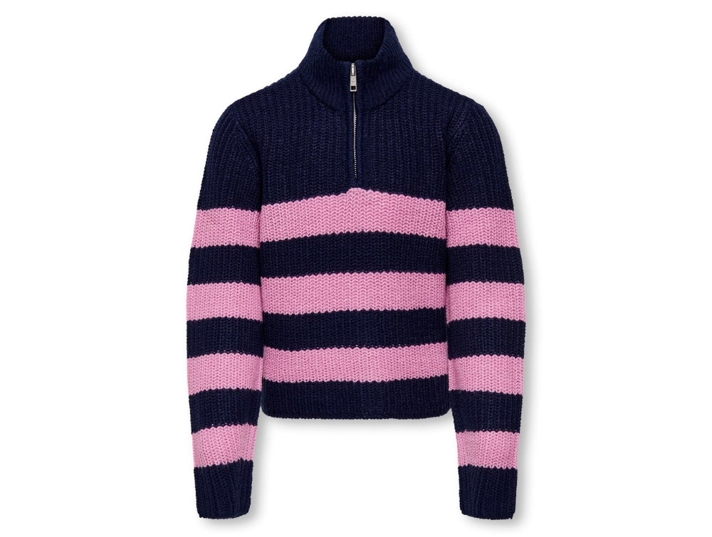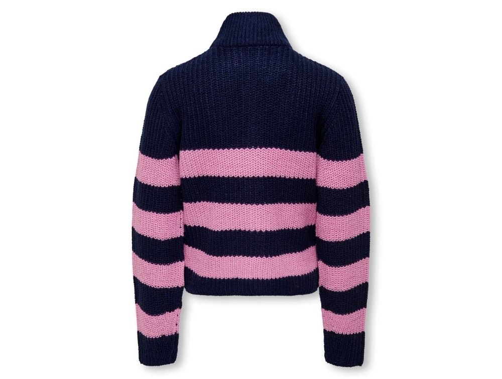 Stribet strik med lynlås i halsåbning i farverne maritime blue og moonlite mauve fra Kids ONLY.