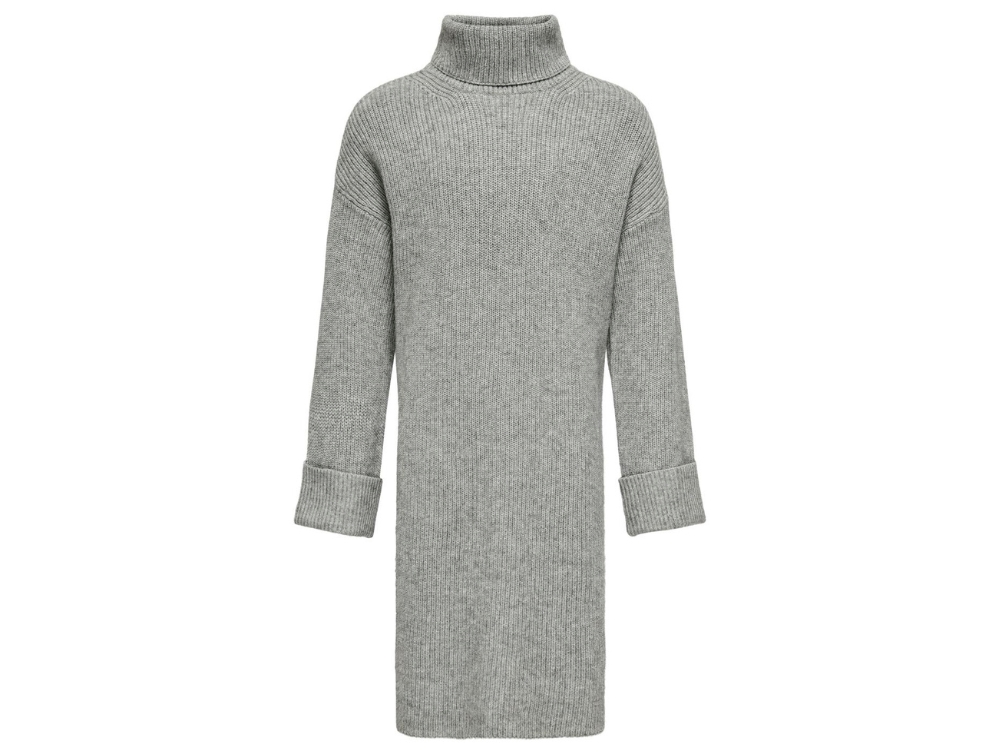 Lækker strikkjole med rullekrave i farven medium grey melange fra Kids Only.