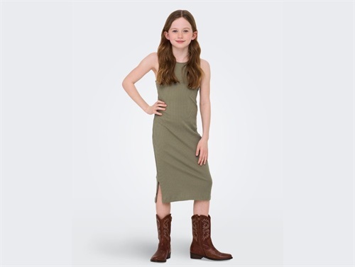 Midikjole i grøn fra KIDS ONLY med tætsiddende pasform og ribstrikket tekstur.