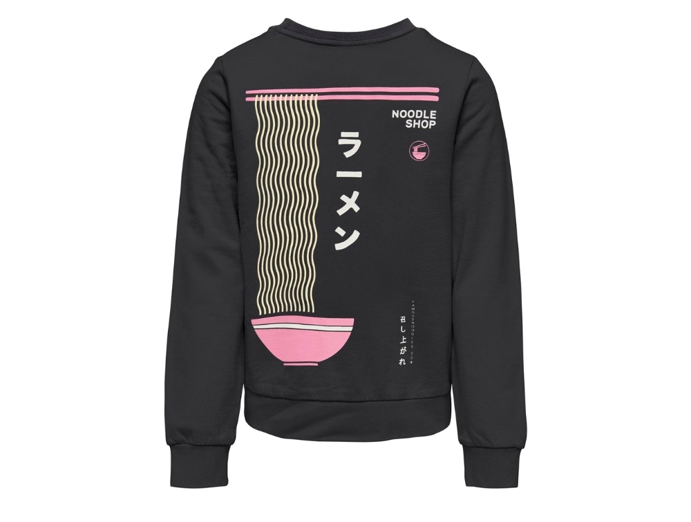 Sweatshirt i farven phantom med noodle-print på front og ryg fra Kids ONLY.