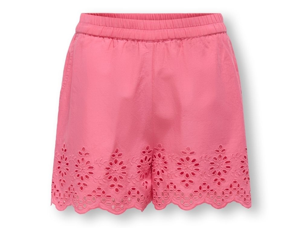 Rosafarvet shorts fra Kids ONLY med broderidetaljer og blød kvalitet i økologisk bomuld.