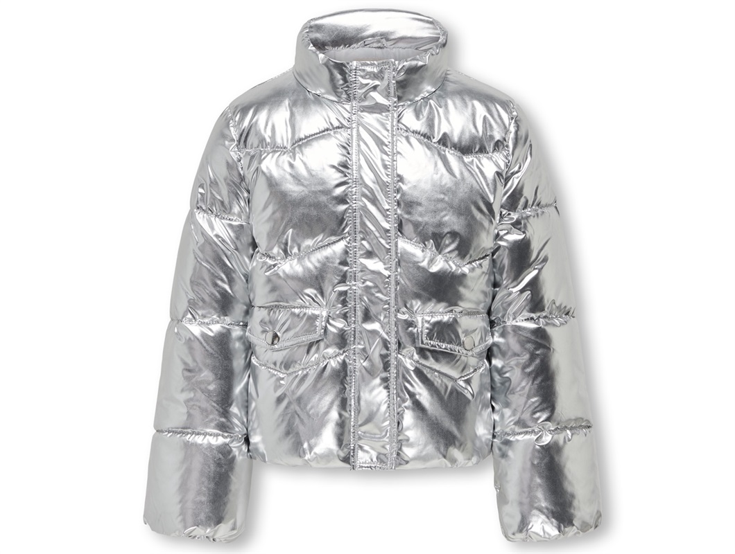 Puffer vinterjakke i farven silver med skinnende folieoverflade fra Kids ONLY.