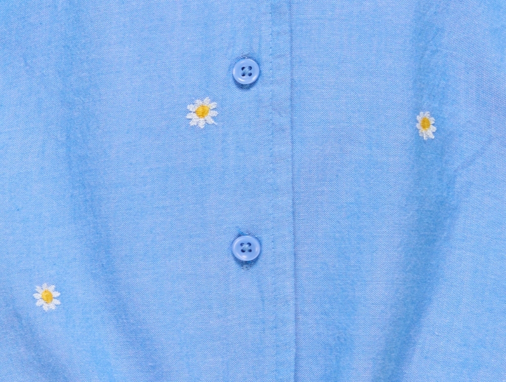 Kids ONLY skjorte i blå med broderede bellis blomster og knudedetalje