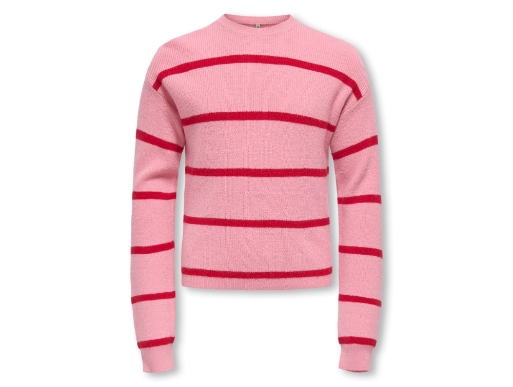 Kids ONLY striktrøje sea pink med smalle røde striber