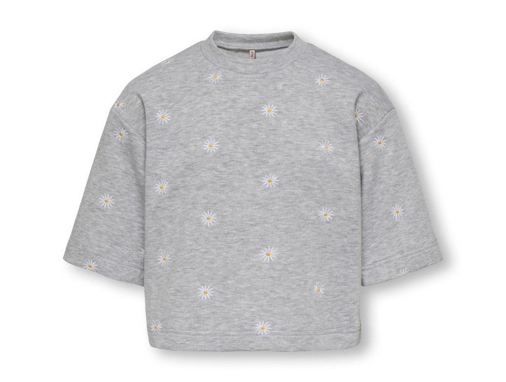 Sweatshirt i grå meleret nuance (light grey melange) fra Kids ONLY med små broderede blomster.