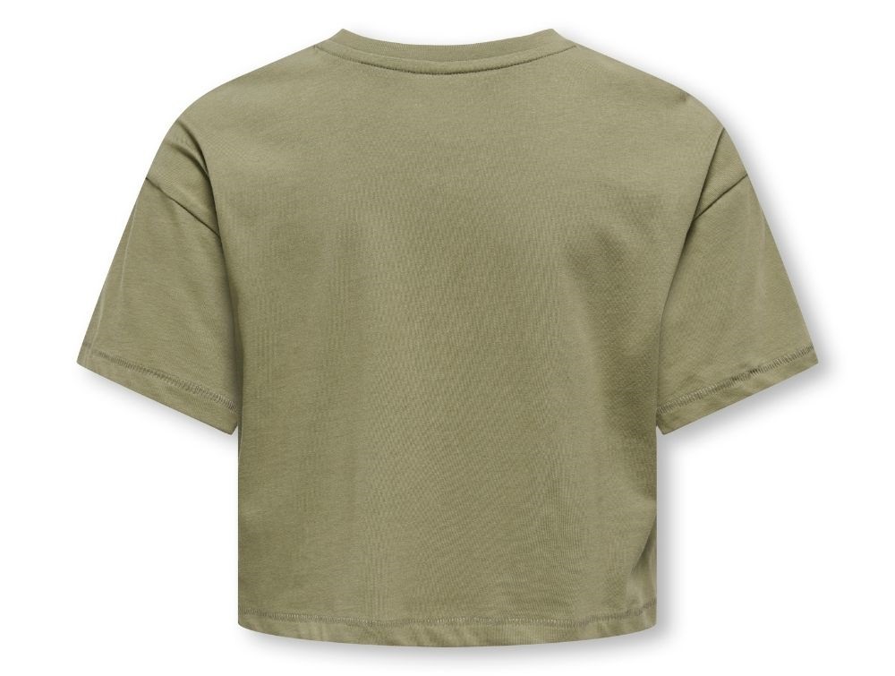 T-shirt i støvet grøn fra Kids ONLY med lyserødt tekstprint og en løs, boxy pasform.