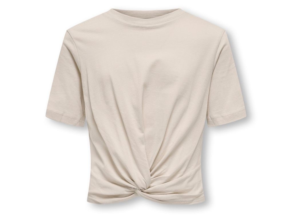 T-shirt i beige fra Kids ONLY med elegant twistdetalje foran og et enkelt, moderne udtryk.