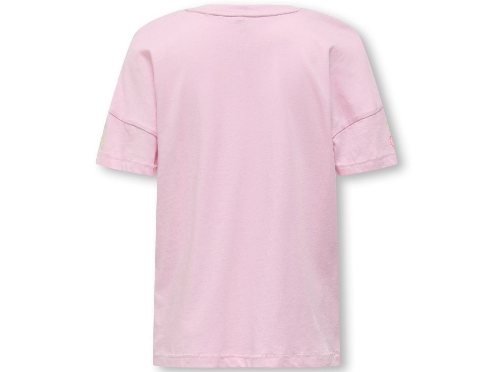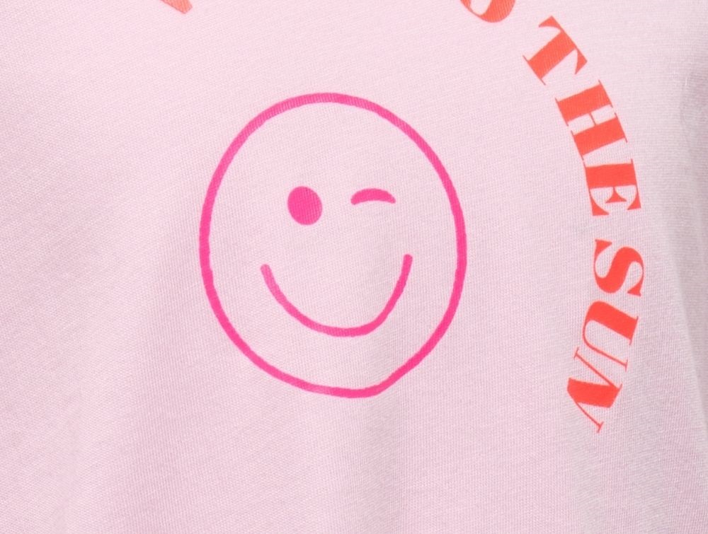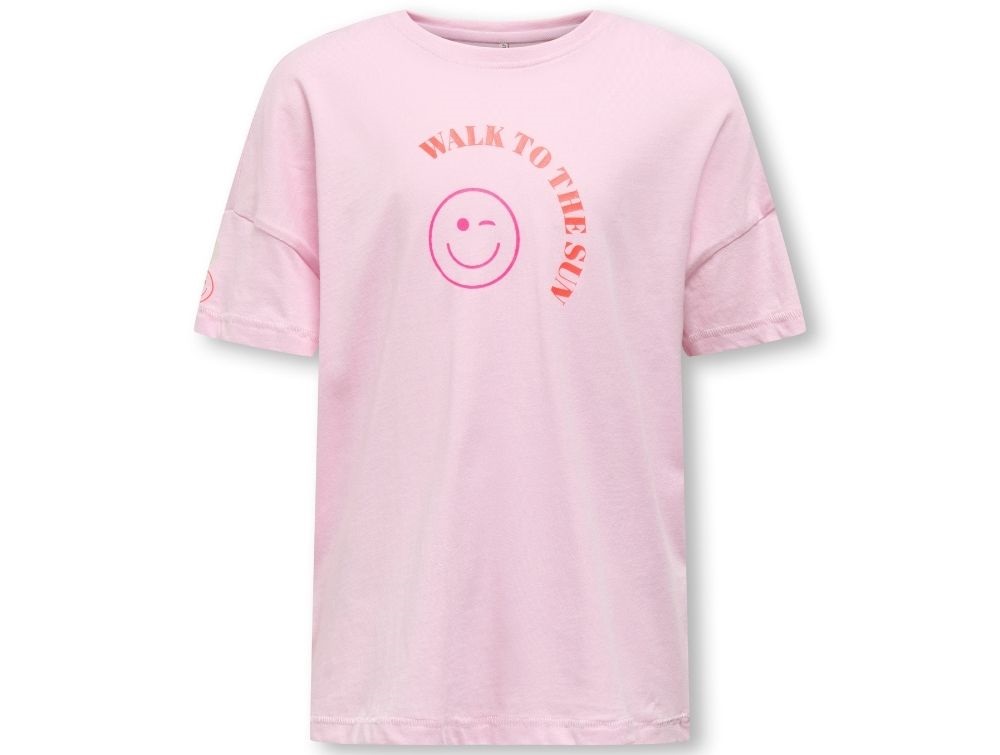 Lyserød t-shirt fra Kids ONLY med stort smiley print foran.