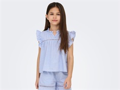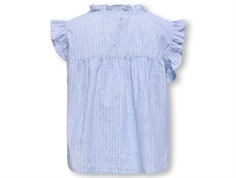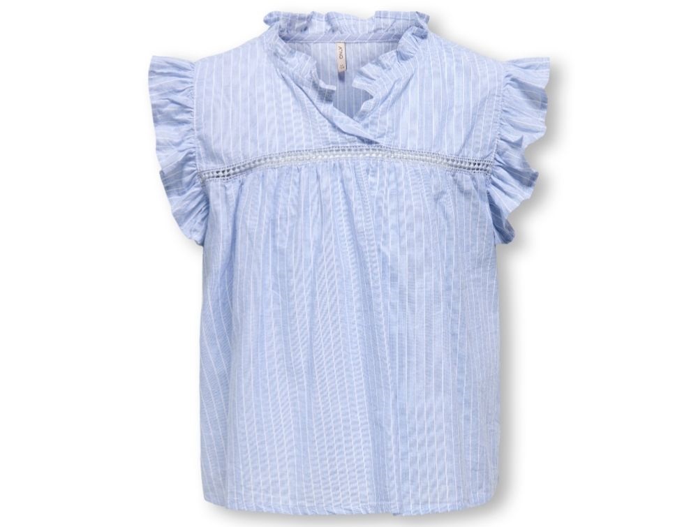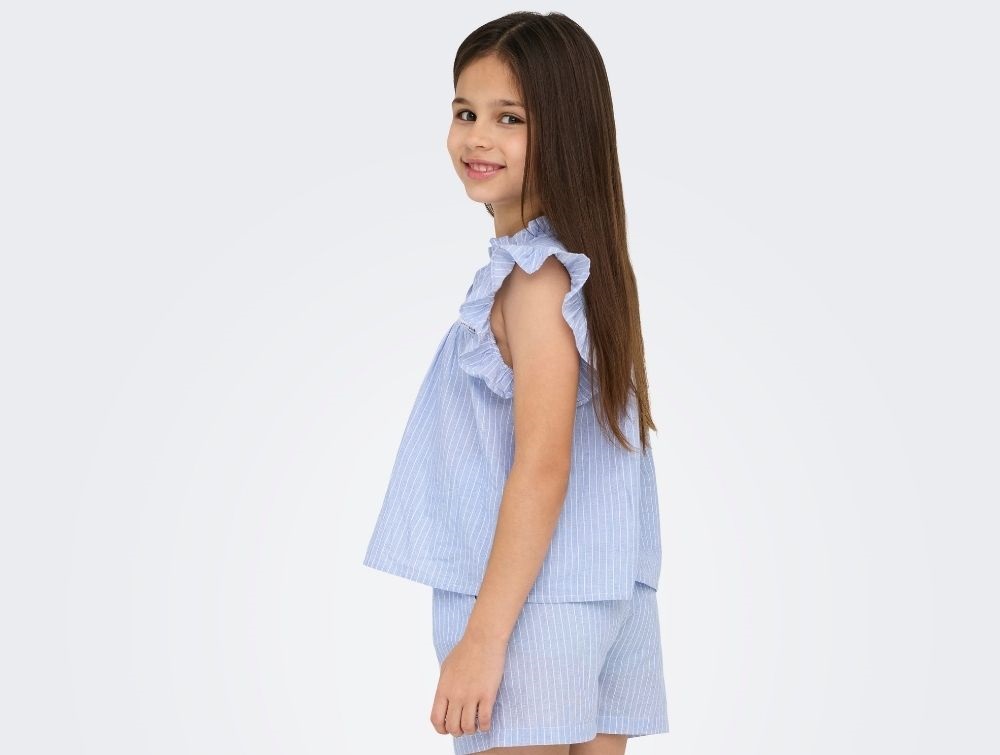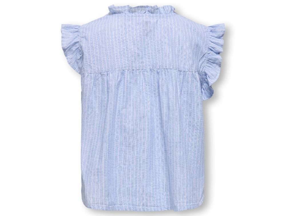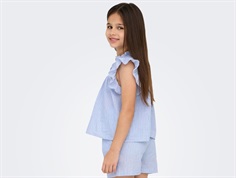 Ærmeløs skjortetop fra Kids ONLY i blå med flæsedetaljer og syninger.