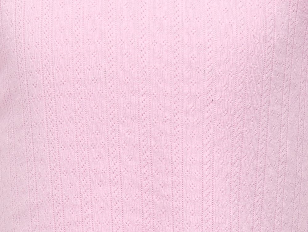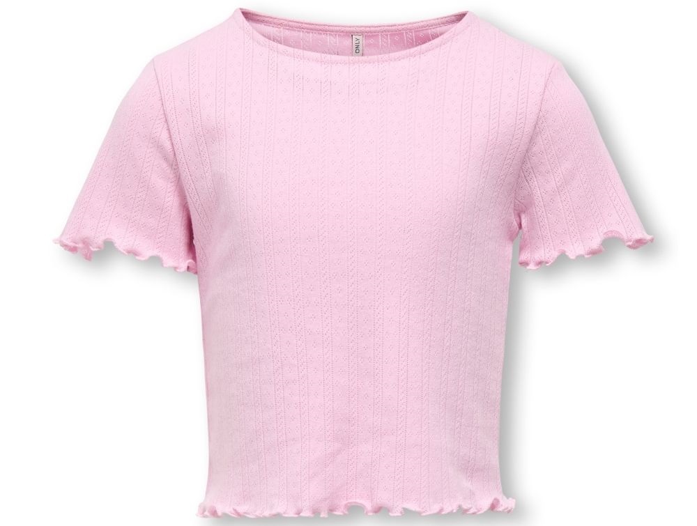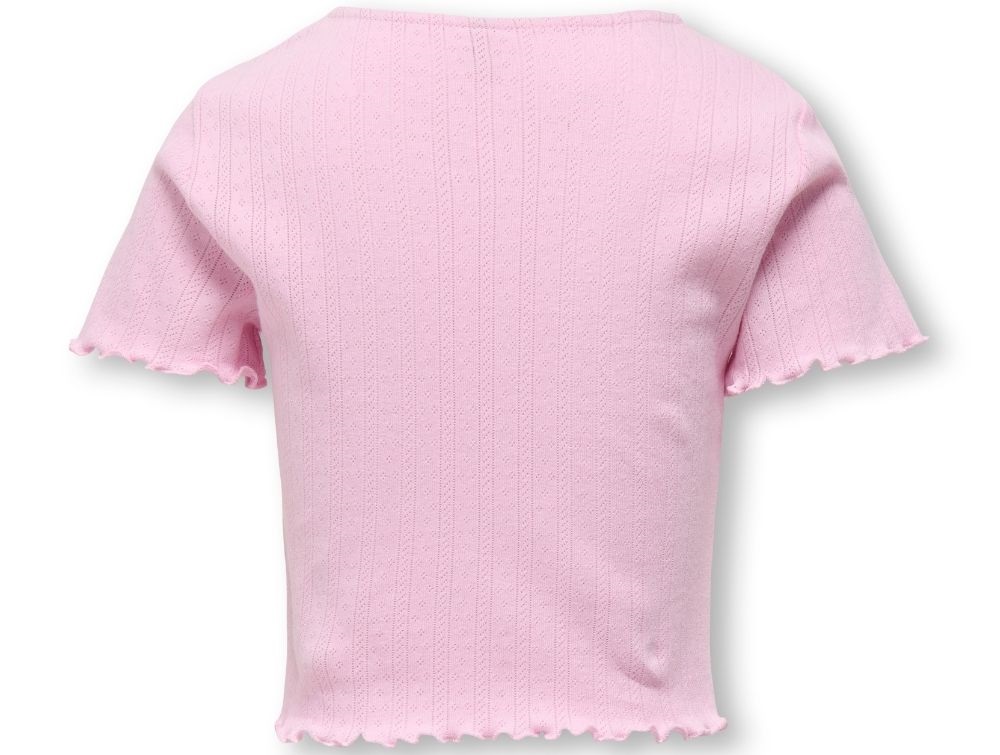 Lyserød top fra Kids ONLY med korte ærmer og fine babylock-detaljer.