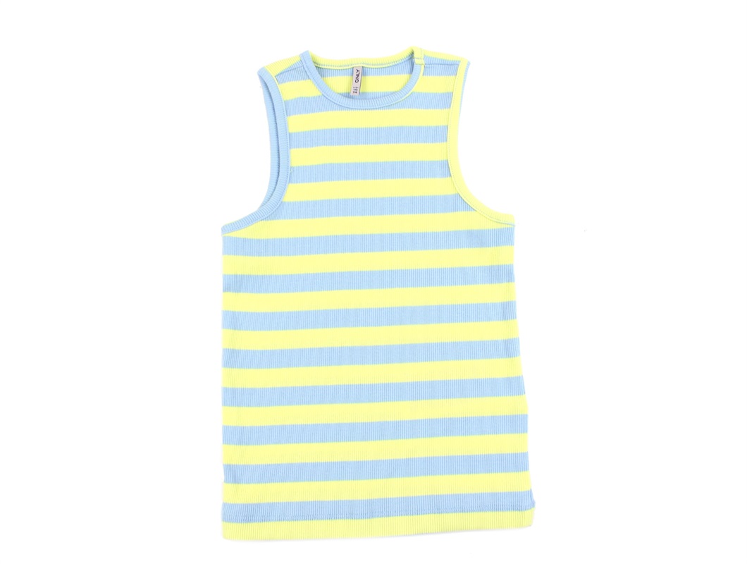 Skøn stribet tanktop i ribkvalitet i farverne yellow pear og clear sky fra Kids ONLY.