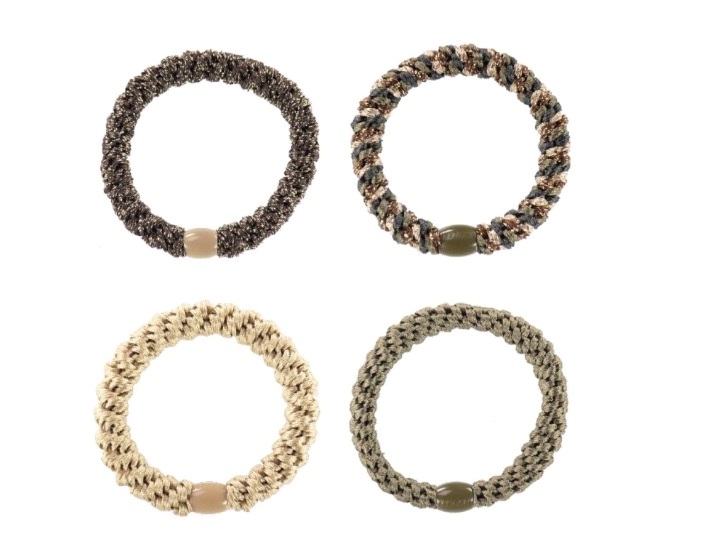 4 hårelastikker i grønne, bronze- og guldfarvede nuancer fra Kknekki.