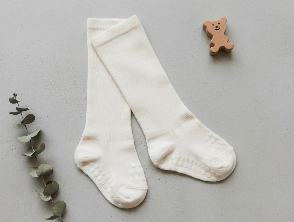 GoBabyGo skridsikre bambusstrømper i råhvid til baby og småbørn