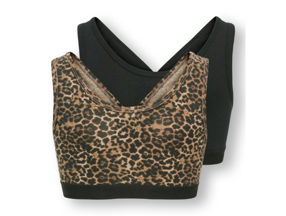 Kids ONLY top 2-pak sort og leopardprint vendbar med logoelastik set forfraKids ONLY top med leopardprint detalje og sort elastik closeupKids ONLY top 2-pak sort og leopardprint vendbar set bagfra