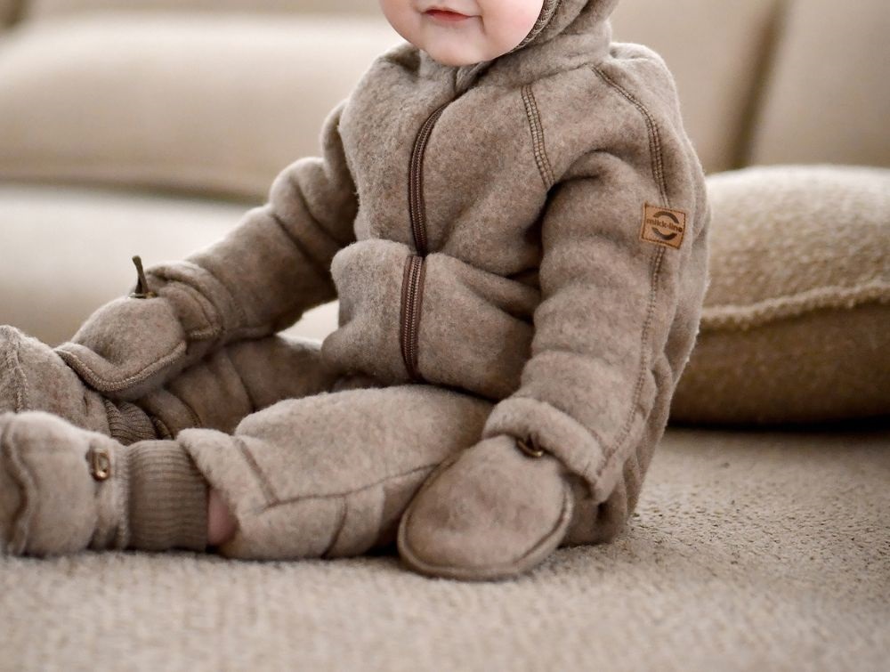 Dragten er ideel til de mindste som et lunt lag i barnevognen, på køreture eller som mellemlag under regntøj eller flyverdragt. Ulden er åndbar og hjælper med at holde barnet tørt og tilpas.