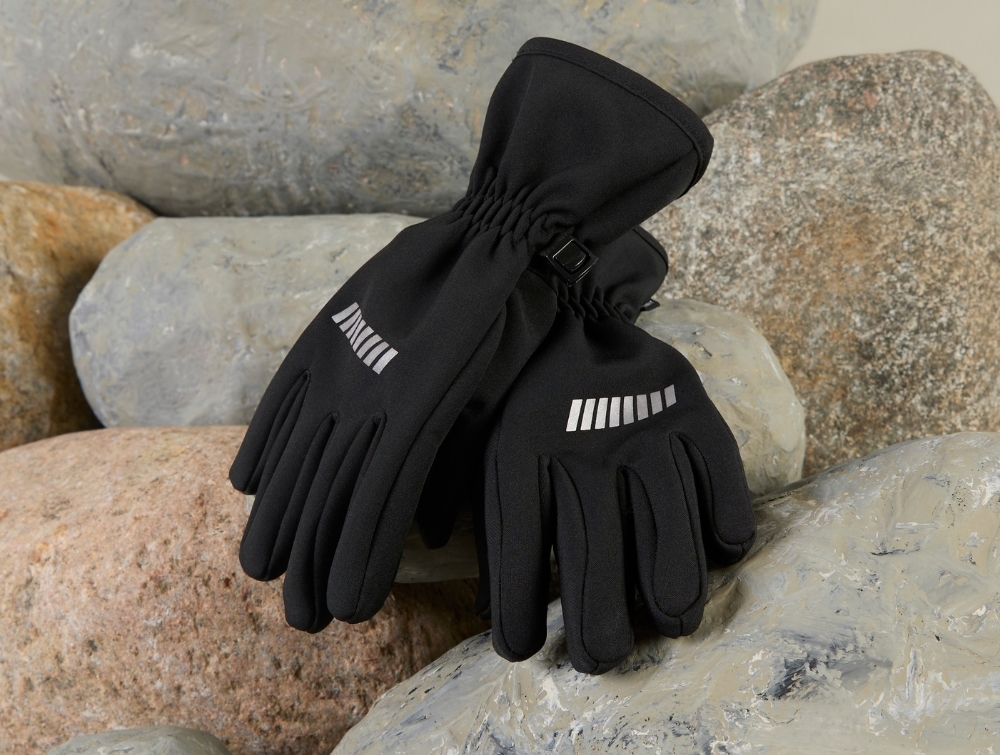 Name It sorte handsker med refleksprintDetalje af Name It sorte handsker med krogName It sorte handsker med refleksprint på stenbaggrund