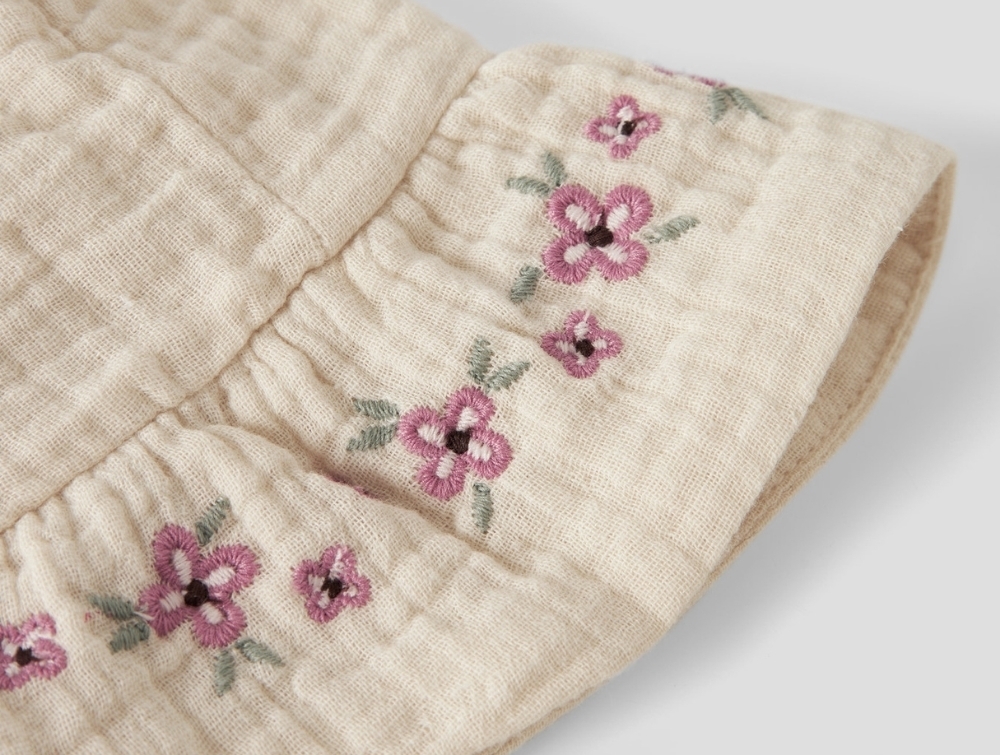 Mere information om Name It solhat almond milk med broderi og bindebånd