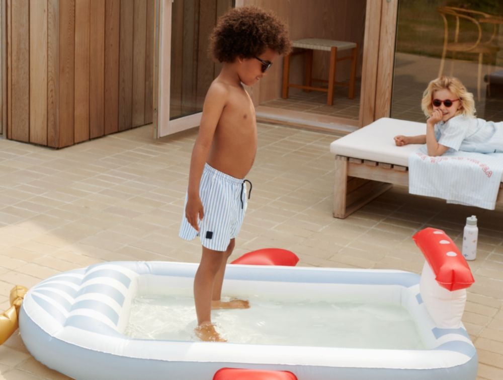 De sporty badebukser har et klassisk stribet design i blå og creme og er perfekte til både strand, pool og leg i sommersolen. De er lavet i et strækbart og hurtigtørrende materiale, som sikrer komfort hele dagen.