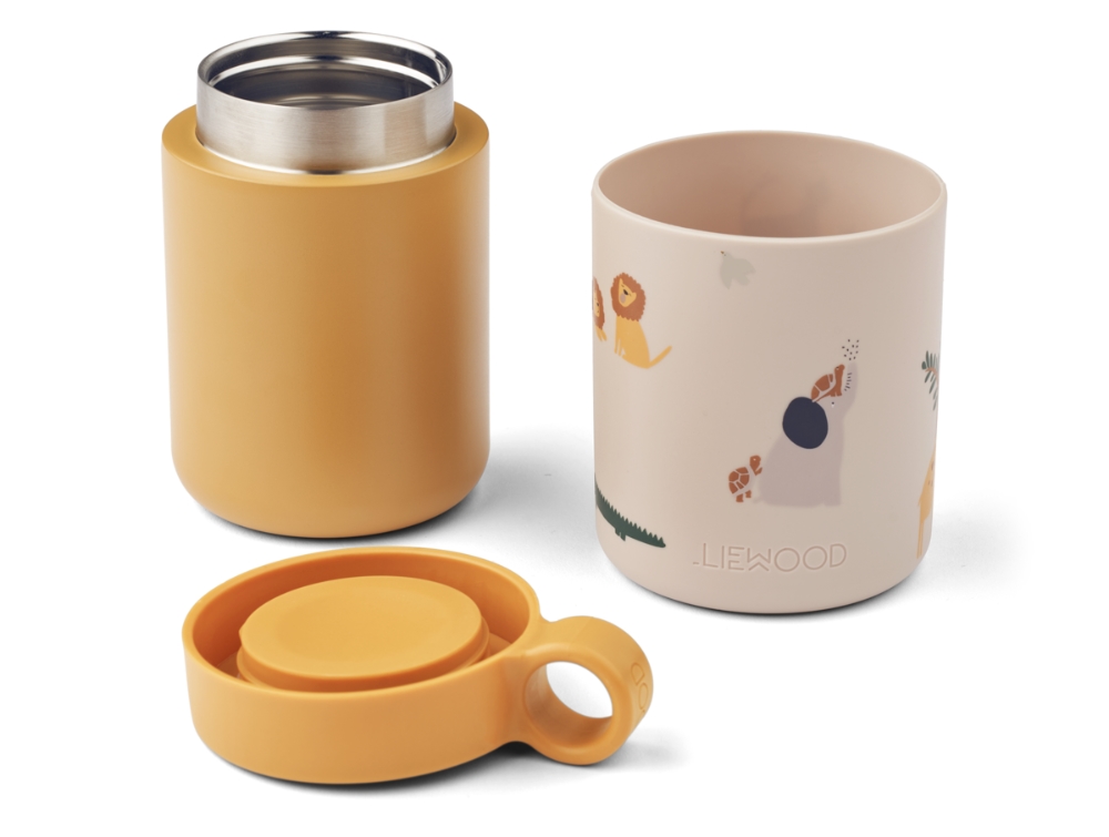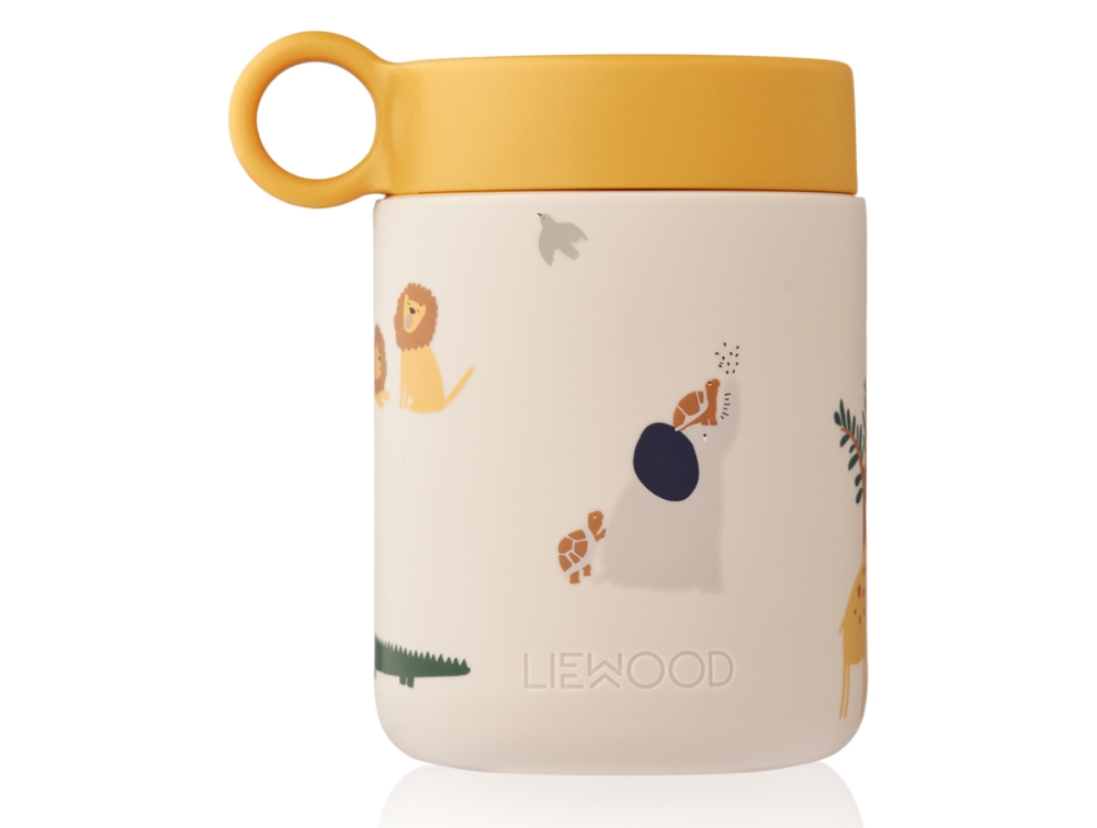 Termobeholder til fødevarer i farven sandy med skønt dyreprint fra Liewood.