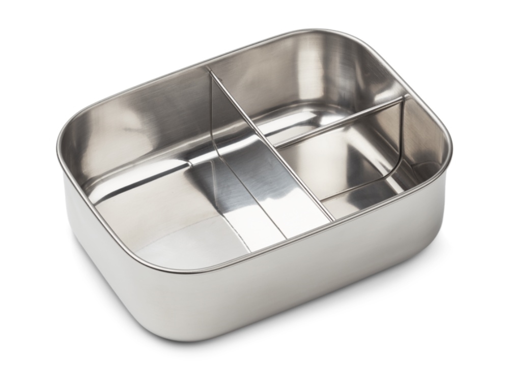 Den har tre rum, som gør det nemt at holde mad adskilt. Låget i fleksibel silikone er nemt at åbne for små hænder og dekoreret med et sjovt krokodillemotiv. Basen i rustfrit stål er holdbar, hygiejnisk og nem at rengøre, hvilket gør madkassen ideel til daglig brug.