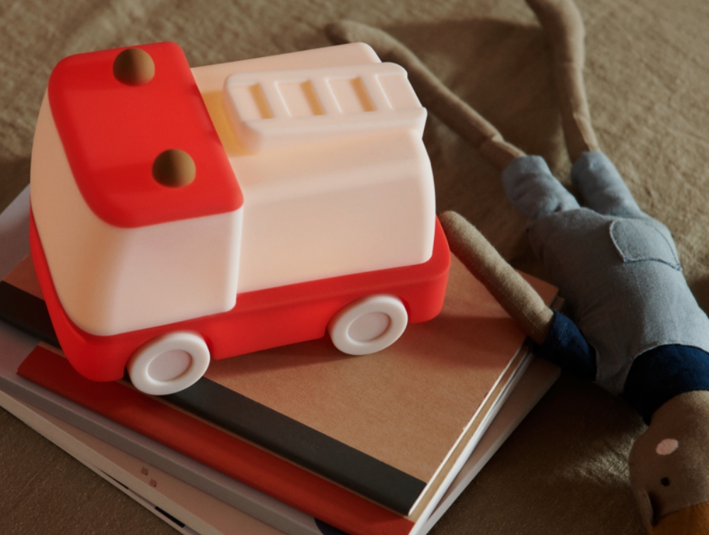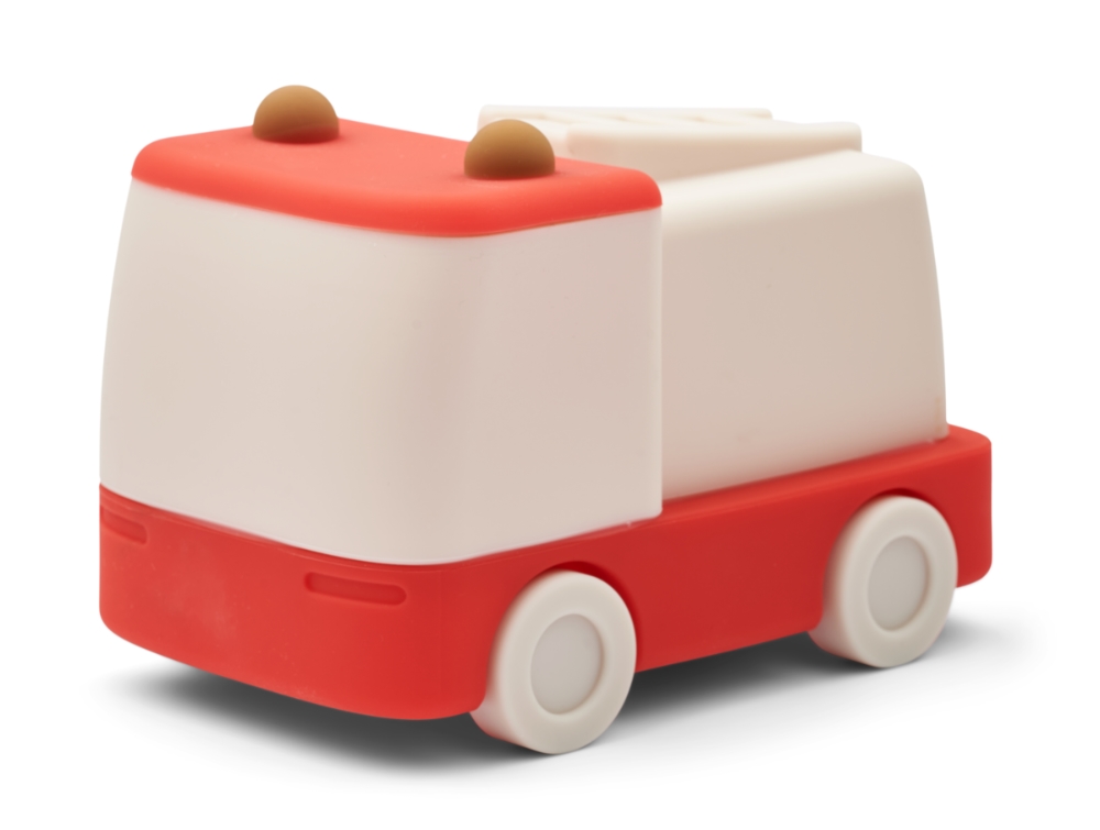 Skøn natlampe formet som en brandbil i farven aurora red mix fra Liewood.