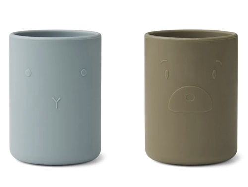 2 brudsikre kopper til baby og børn i farvetemaet blue fog/khaki mix fra Liewood.