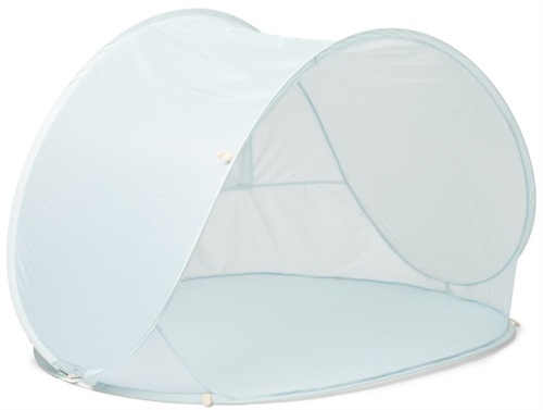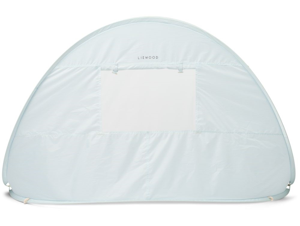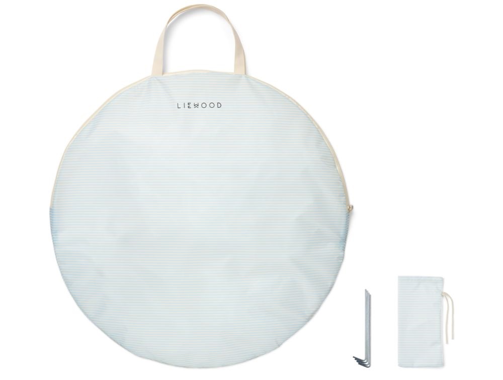 Stribet pop-up strandtelt i farverne lyseblå og creme fra Liewood.