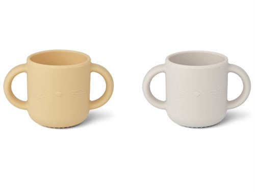 2 babykopper med hank i silikone i farven jojoba/sea shell mix med kattedetaljer fra Liewood.