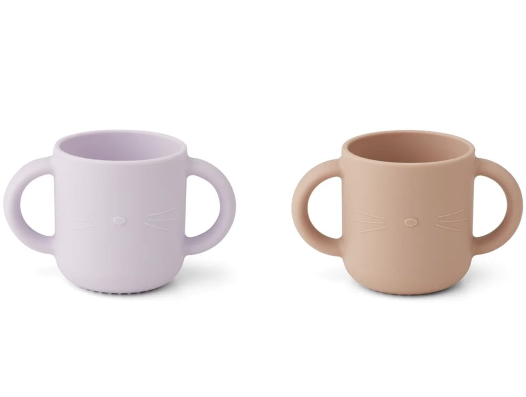 2 babykopper med hank i silikone i farven light lavender rose mix med kattedetaljer fra Liewood.