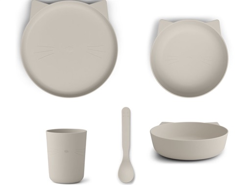 Spisestel i farven sandy med kattedetaljer fra Liewood.