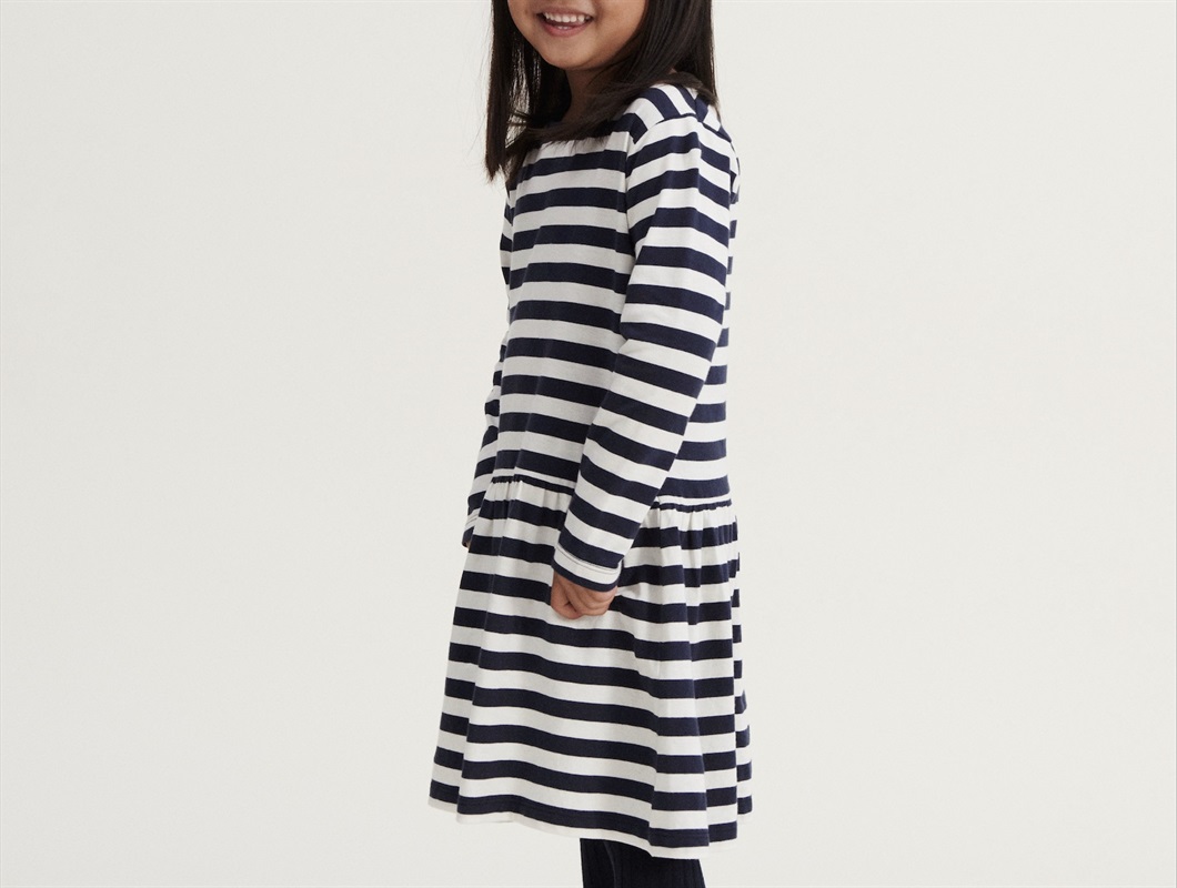 Stribet kjole i farverne classic navy og creme de la creme fra Liewood.