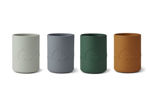 4 brudsikre kopper til baby og børn i forskellige farver kaldet dino blue multi mix fra Liewood.